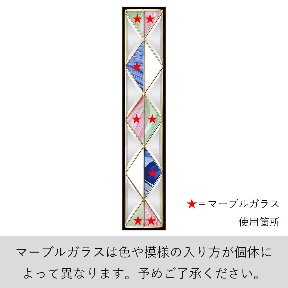 | 備考 | ・マーブルガラスの部分は1枚1枚模様や色あいが異なります。複数枚取付けられる場合にも模様や色あいを合わせる事は出来ませんのでご了承ください。 ・ステンドグラスには表面と裏面があります。商品画像の向きが表面で内部の一部のガラスは面取り(角が斜め)されております。表面と裏面では見え方が異なりますので、複数枚取付けられる場合には必ず表面・裏面を揃えて取付けてください。通常は表面を室内側にしてください。 ・室内での取付には専用木枠のSHF-ZG1があります。(別売り) ・屋外での取付には防水アルミ枠加工も可能です。(別途料金・要見積) ・ハンドメイドのため、製造過程で微細な異物(埃や塵など)の混入や微小な傷が付く場合がありますが、これらはハンドメイド商品の持ち味であり、工業製品と違い職人がひとつひとつ手作業で作業した証です。商品としての不良ではありませんので、返品・交換は出来ません。 ・施工後、日常生活において強化ガラス部分が破損した場合、無料で代替品をお送り致します。保証期間はご購入後2年間です。※施工費などは保証対象外です。 ・施工後、通常の仕様においてピュアグラス内部にサビや結露が生じた場合、無料で代替品をお送り致します。保証期間はご購入後1年間です。※施工費などは保証対象外です。 ・運送中に破損した場合は、代替品をお届け致します。保証期間は商品到着後5日以内までのご連絡となります。 ・商品の色はPCと異なって見える場合があり、またPCによっても異なります。色がイメージと異なるという理由では返品は承りかねますので、予めご了承ください。 |