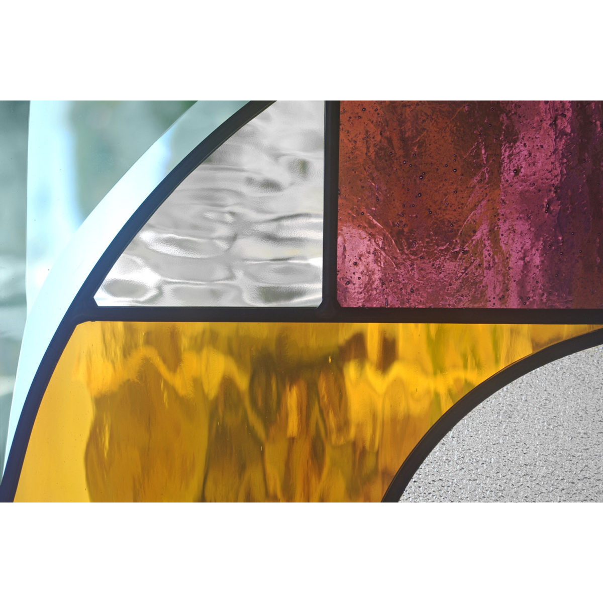 ●ステンドグラスらしい、鮮やかな色彩が魅力の一枚。空間をパッと明るくする、ポップで楽しいデザインです。