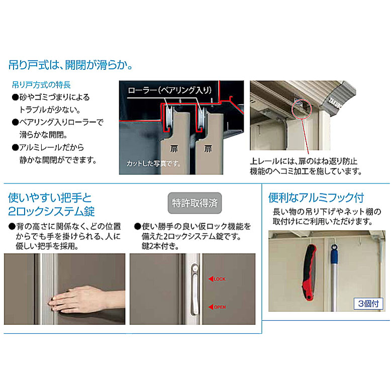 ●扉はタクボ独自の吊り戸方式なので開閉は軽く、静かに、滑らかに行えます。