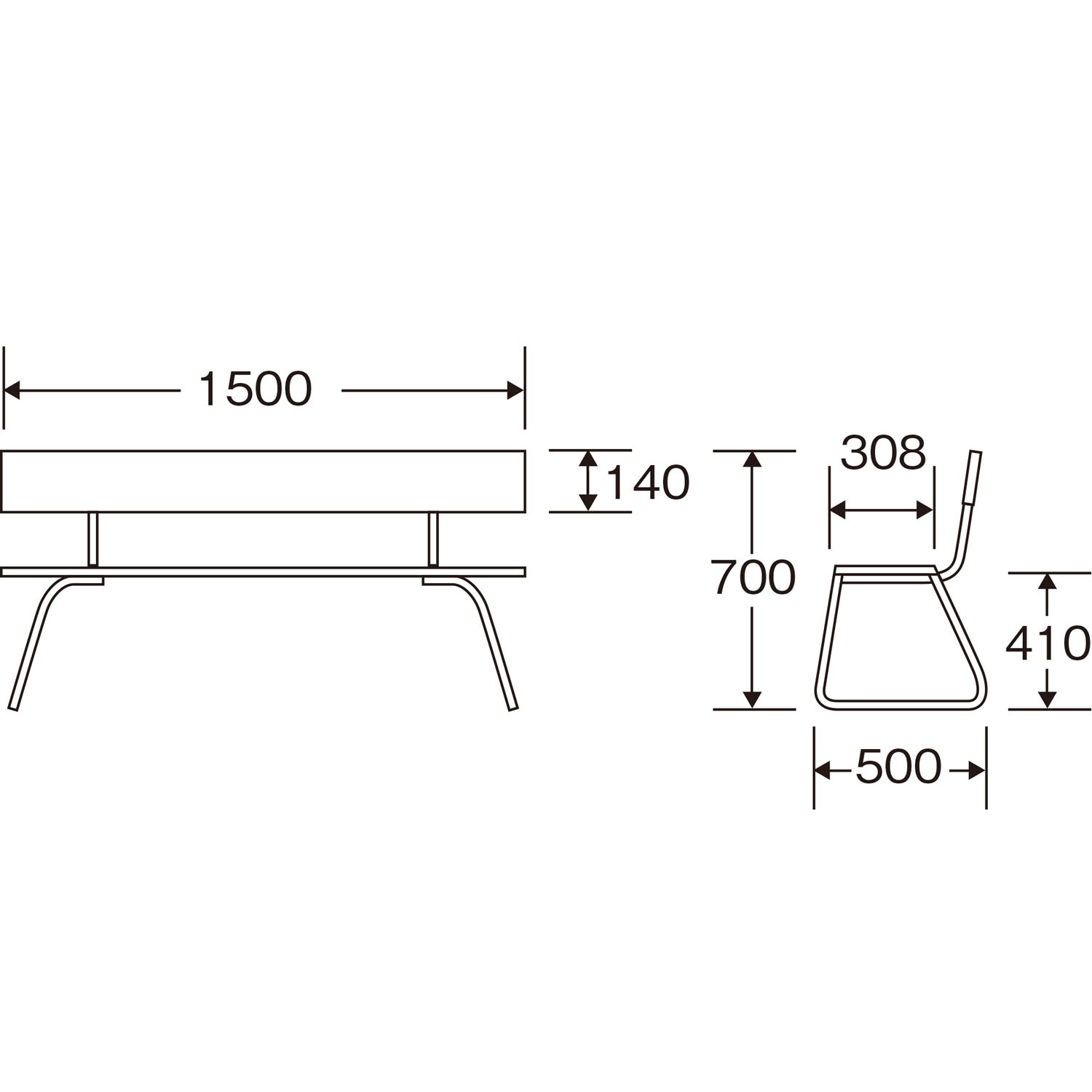 ●再生樹脂を利用したリサイクル仕様のベンチです。公園などの屋外での使用にも適しています。幅150㎝の背付きタイプです。