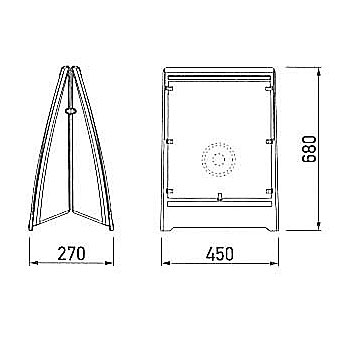 本体:45cm(幅) x 27cm(奥行) x 68cm(高さ) 白無地面板:39.2cm(幅) x 52.5cm(高さ) |
