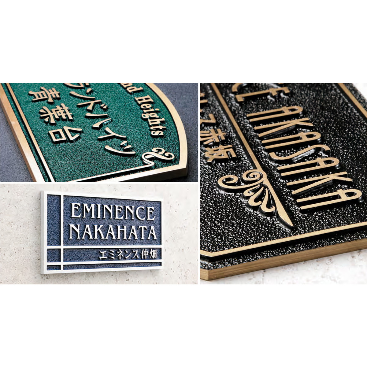 文字・枠:ブロンズカラー(未塗装・塗装不可) 下地:梨地青銅色 |