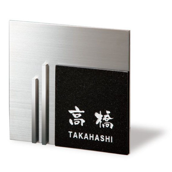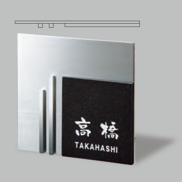 天然石+ステンレス表札 DK-110 スタイリッシュ 黒ミカゲ&ステンレス |