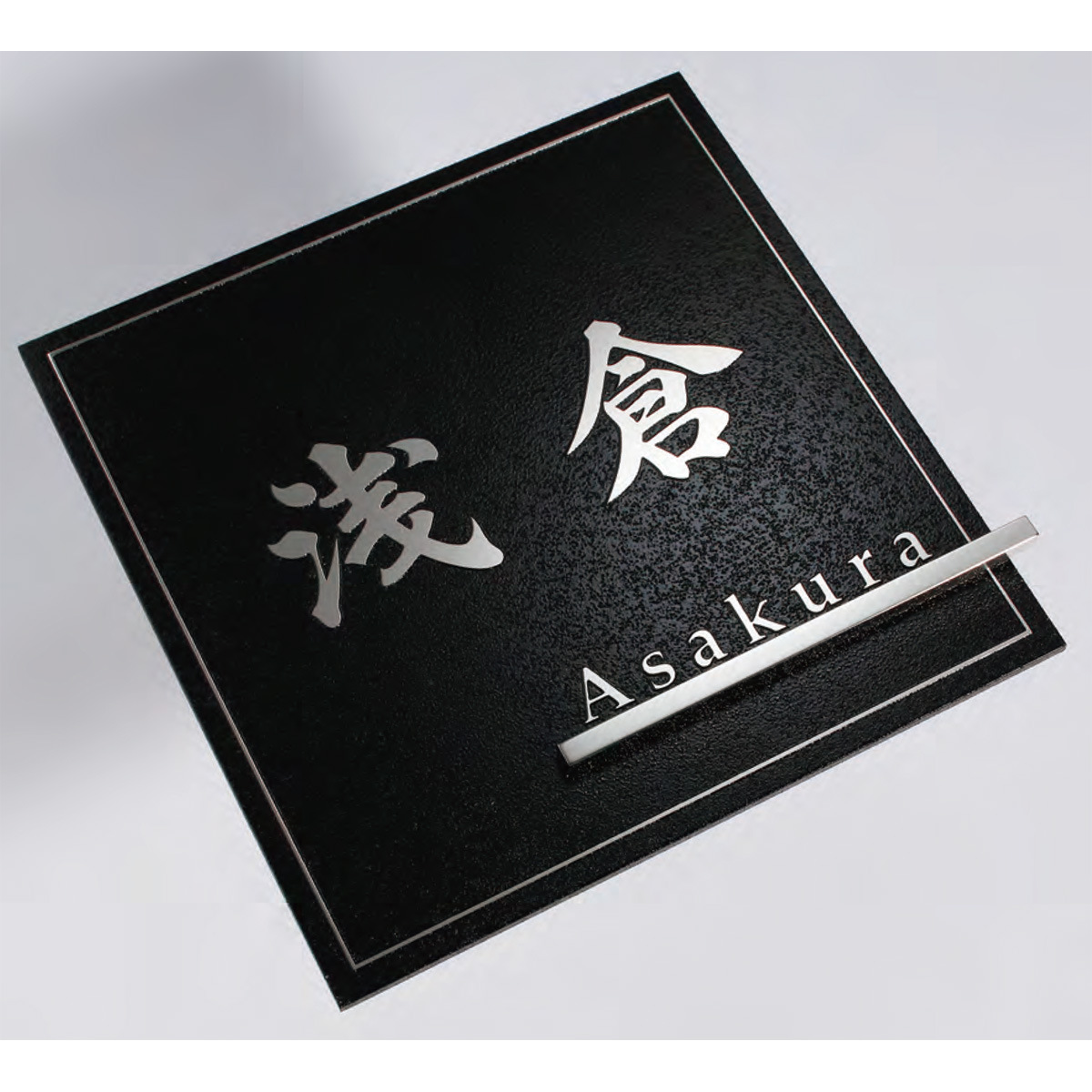 文字・模様:ステンレスシルバー(未塗装・塗装不可) 下地:梨地黒 |