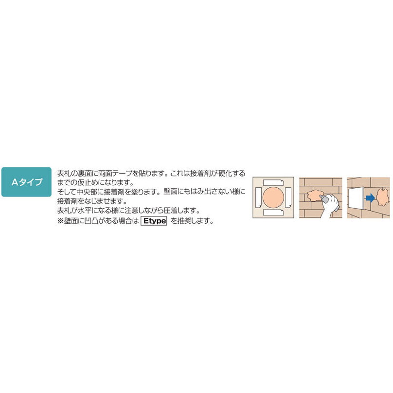 接着剤や両面テープ(付属しておりません)(Aタイプ) ※接着剤や両面テープは屋外用多用途の強力タイプをご利用ください。 ※木製の壁などに取り付ける場合は接着剤がお勧めです。 |