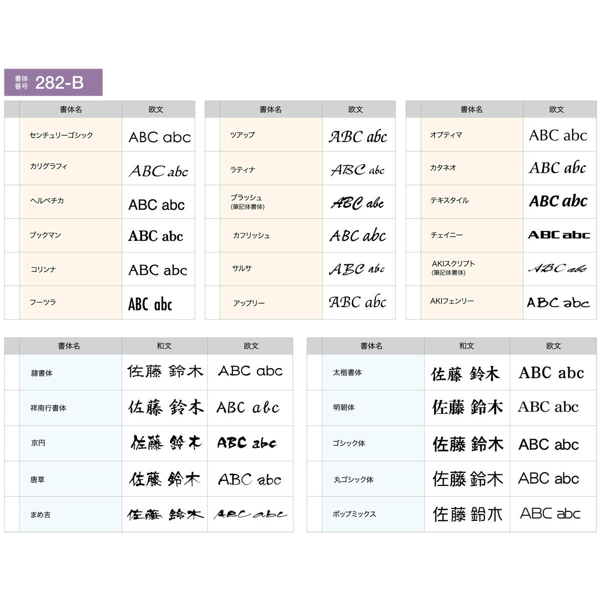 漢字:京円 英字:ゴシック体 対応書体番号:282-B |