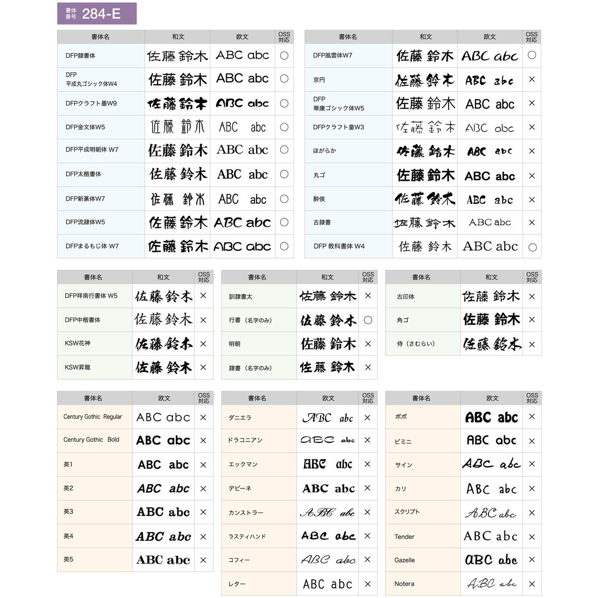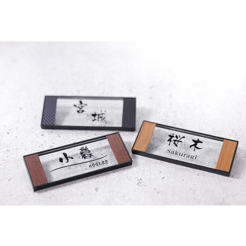 レイアウト1:漢字:京円 英字:DFP平成明朝体 W7 レイアウト2:漢字・英字:ほがらか レイアウト3:英字:DFP平成明朝体 W7 レイアウト4:漢字:京円 対応書体番号:284-E ※文字数が多い場合には製作できない場合や価格が変わる場合が御座います。 |