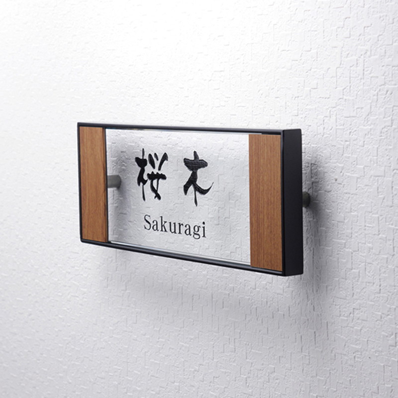 文字:ブラック フレーム:ブラック 両サイドカラーパーツ:ステンレスにチーク木目シート貼り |