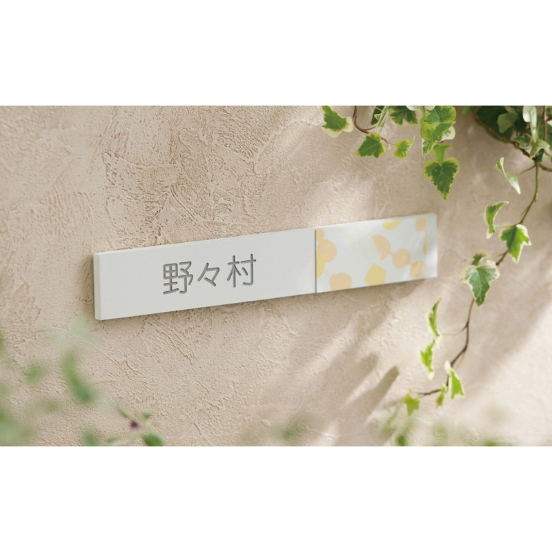 ●水彩画のようなふんわりとしたカラーが心地いいナチュラルタイル表札。自然モチーフはエントランスの印象を豊かにしてくれます。