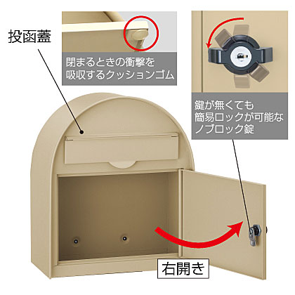 ●郵便物は前から投函し、前面パネルを開いて取り出します。