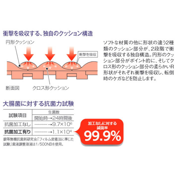 ジョイント式クッションマット 抗菌フミンゴ(屋内用)の特徴
