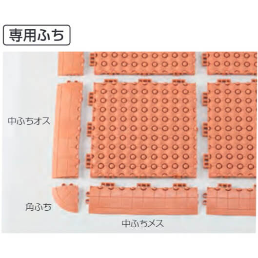 ※「中ふちオス」と「中ふちメス」は、どちらかが「上と右」「下と左」(マットによっては「上と左」「下と右」になりますので画像にてご確認ください)に取付できるようになっているので、4辺にフチを付ける場合には同数が必要になります。