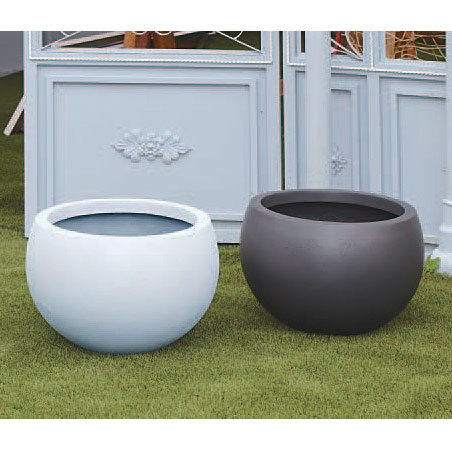 ●角の立ったエッジ、表面の自然なテクスチャやタフな使用に耐える品質の高さが特徴です。モダンにも和風インテリアにも良く似合うボウル球型のプランターです。