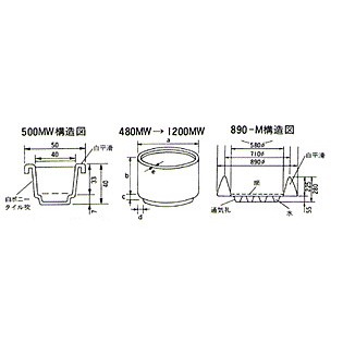 | サイズ | 500MW:W50cm(外径)×H40cm、内径40cm 1277MW:W120cm(外径)×H77cm、内径105cm 1500MW:W150cm(外径)×H97cm、内径133cm |