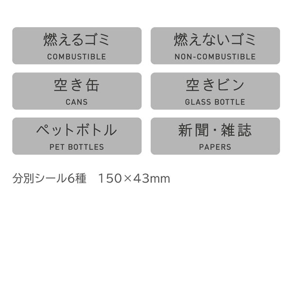 | 規格 | #A 燃えるゴミ、#B 燃えないゴミ、#C 空き缶、#D 空きビン、#J ペットボトル、#M 新聞・雑誌 |