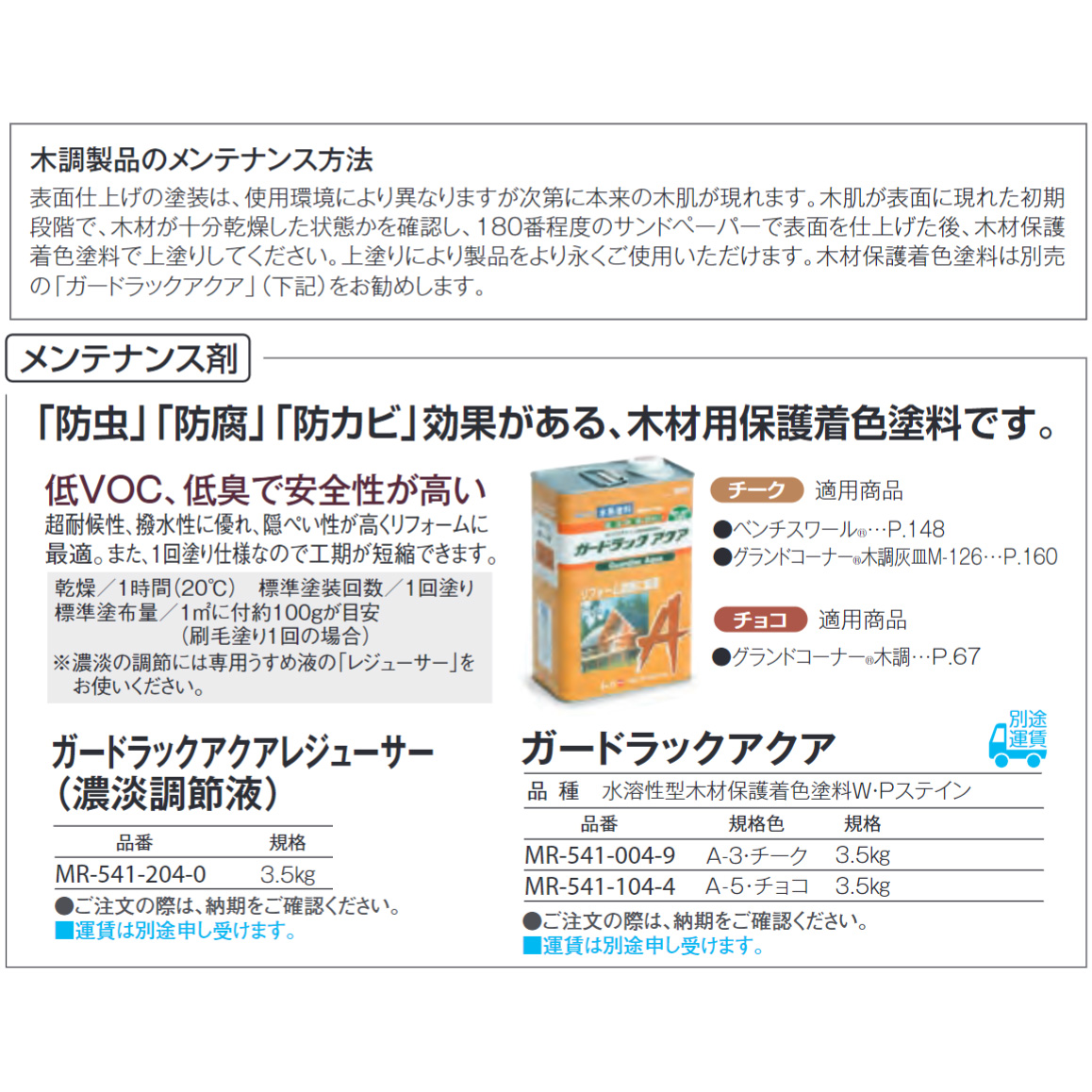| 材質 | 座面:天然木(水溶性型木材保護着色塗料、クリアー塗装) 脚:アルミ鋳造にアクリル塗装 |