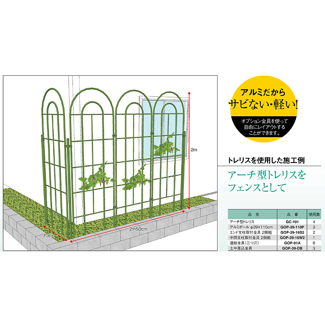| 商品名 | アルミ製 アーチ型トレリス GC-101(5枚セット) |