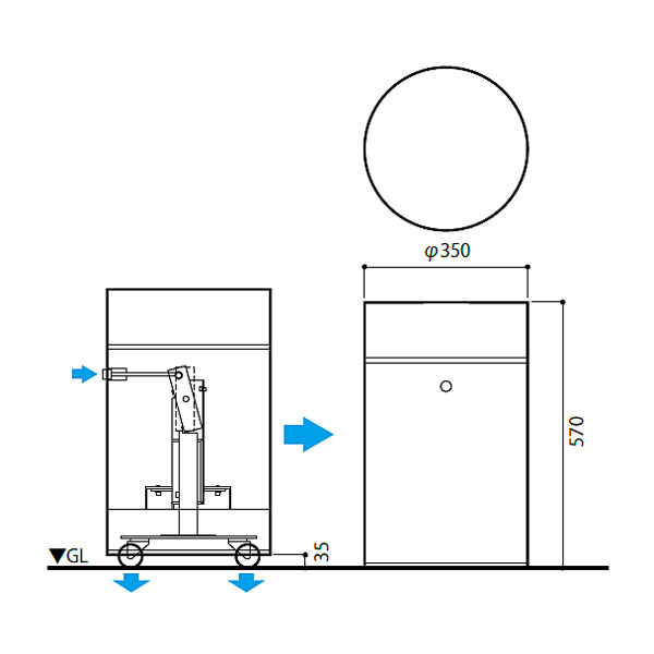 ●ワンタッチ操作で内蔵したムーブの上げ下げ、重量級ボラードの設置や移動が自由自在にできます。