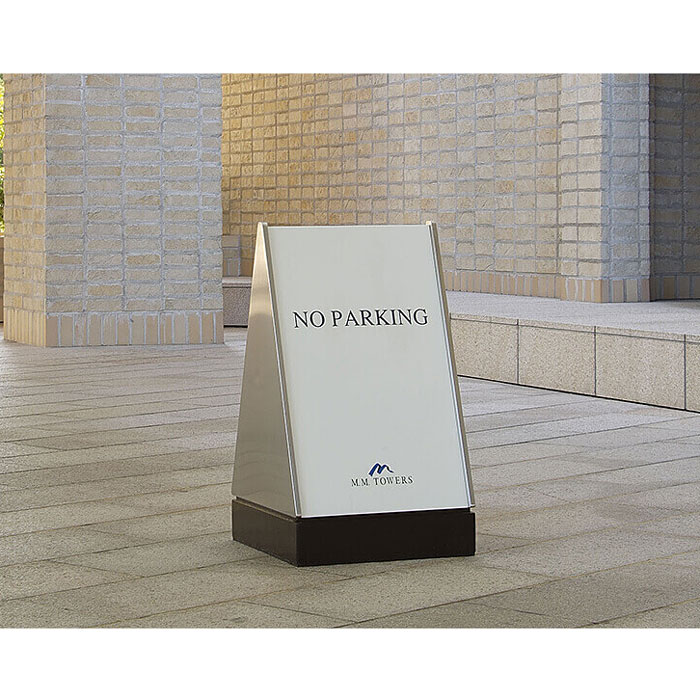●置くだけで工事がいらない「サインパネル型タイプ」の可動式車止めです。
