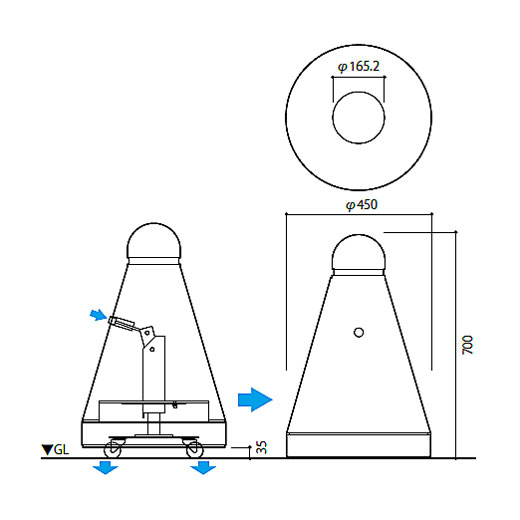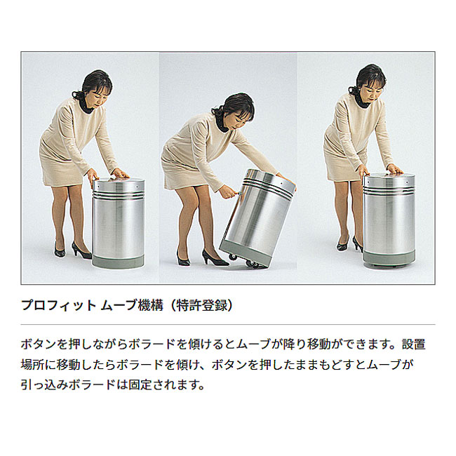 ●ワンタッチ操作で内蔵したムーブの上げ下げ、重量級ボラードの設置や移動が自由自在にできます。