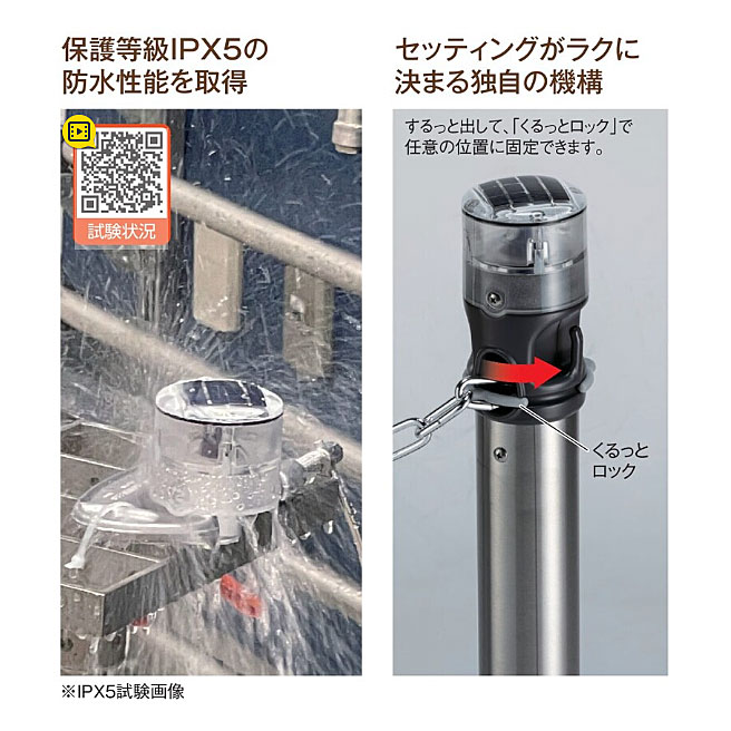 ●LEDユニット部は、保護等級IPX5の防水設計で雨への耐久性を確保しています。