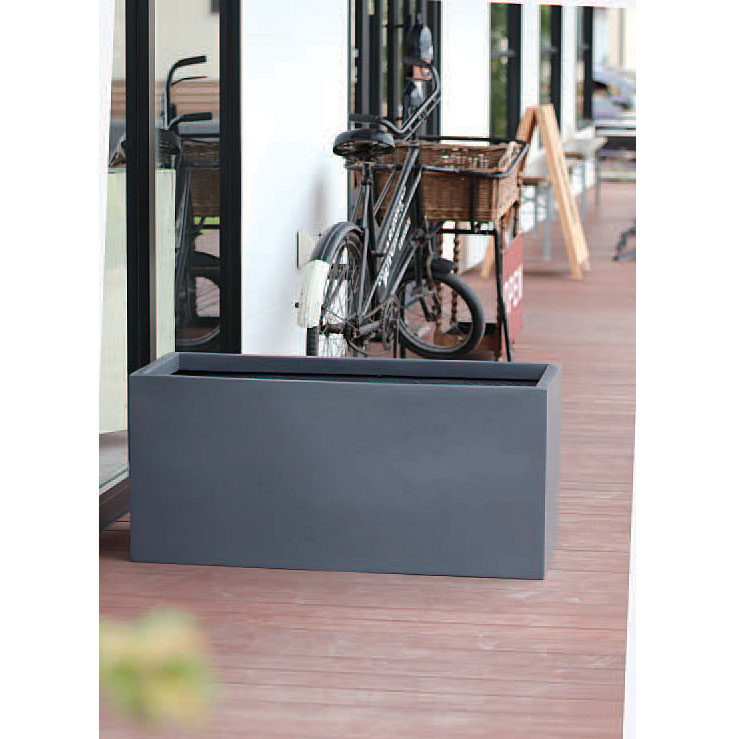 ●角の立ったエッジ、表面の自然なテクスチャやタフな使用に耐える品質の高さが特徴です。軽量かつ丈夫なハイワイドスクエア型の超大型プランターです。