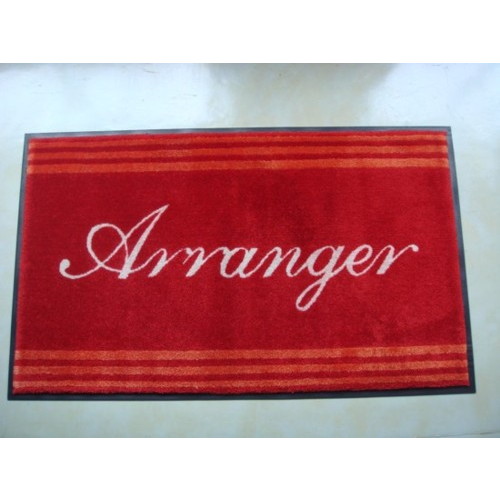 ●屋内用泥落としマットです。ご希望の文字やロゴデザイン等が入ったオリジナルの玄関マットです。デザインがシャープに仕上がるハメコミ方式です。