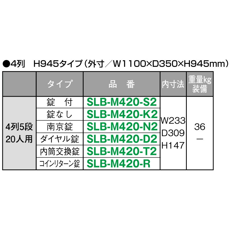 | 商品名 | シューズボックス 4列5段20人用 アミ棚なし SLB-M420 |