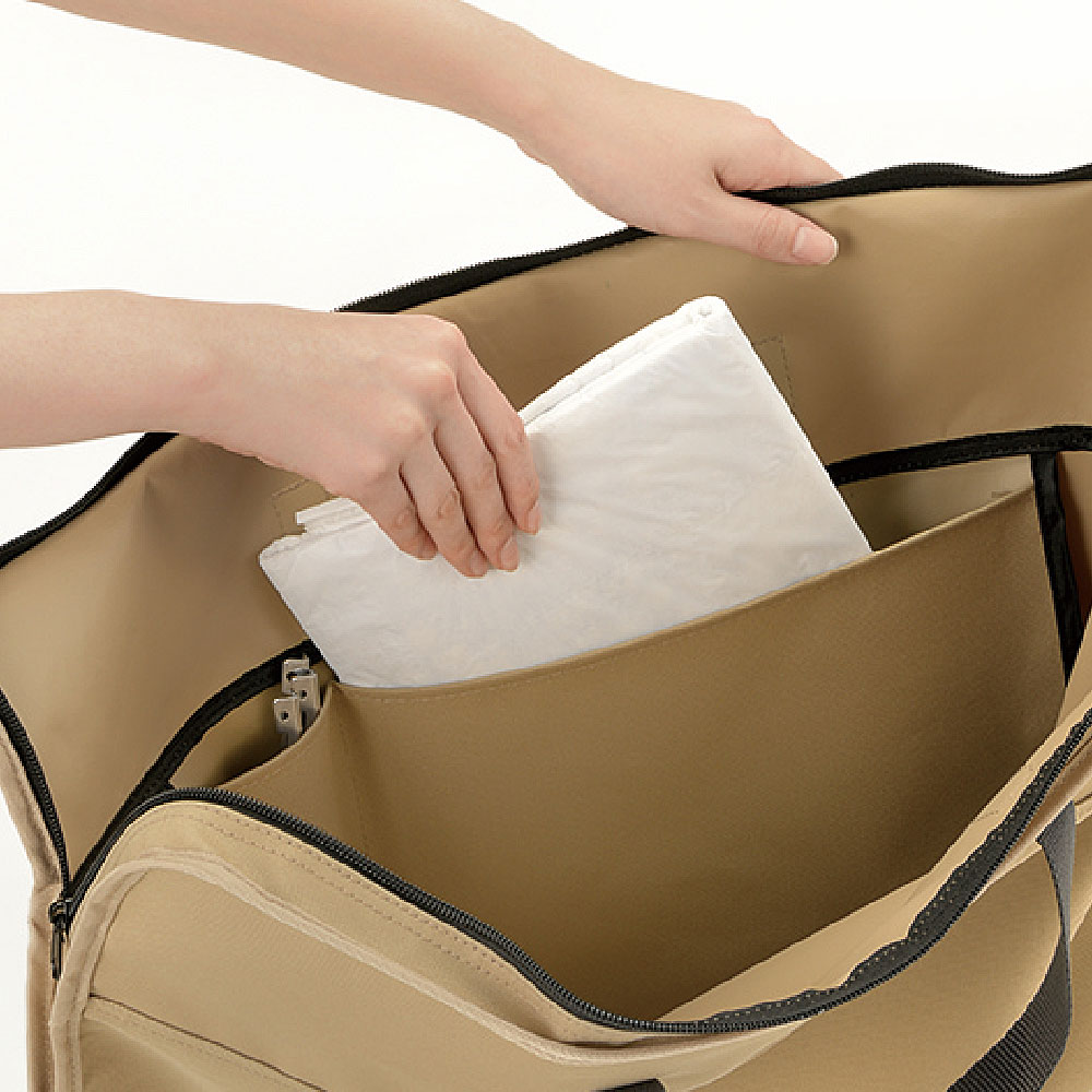 | 材質 | 布部・メッシュ部・面ファスナー:ポリエステル フレーム:スチール バッグ持ち手・ぺグループ・ミニループ:ポリプロピレン ファスナー:ナイロン・スチール フック:ナイロン |