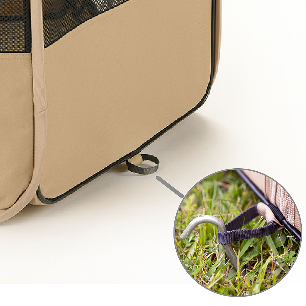 ●ペグで本体を固定(3ヶ所)できます。ペグは付属しておりません。