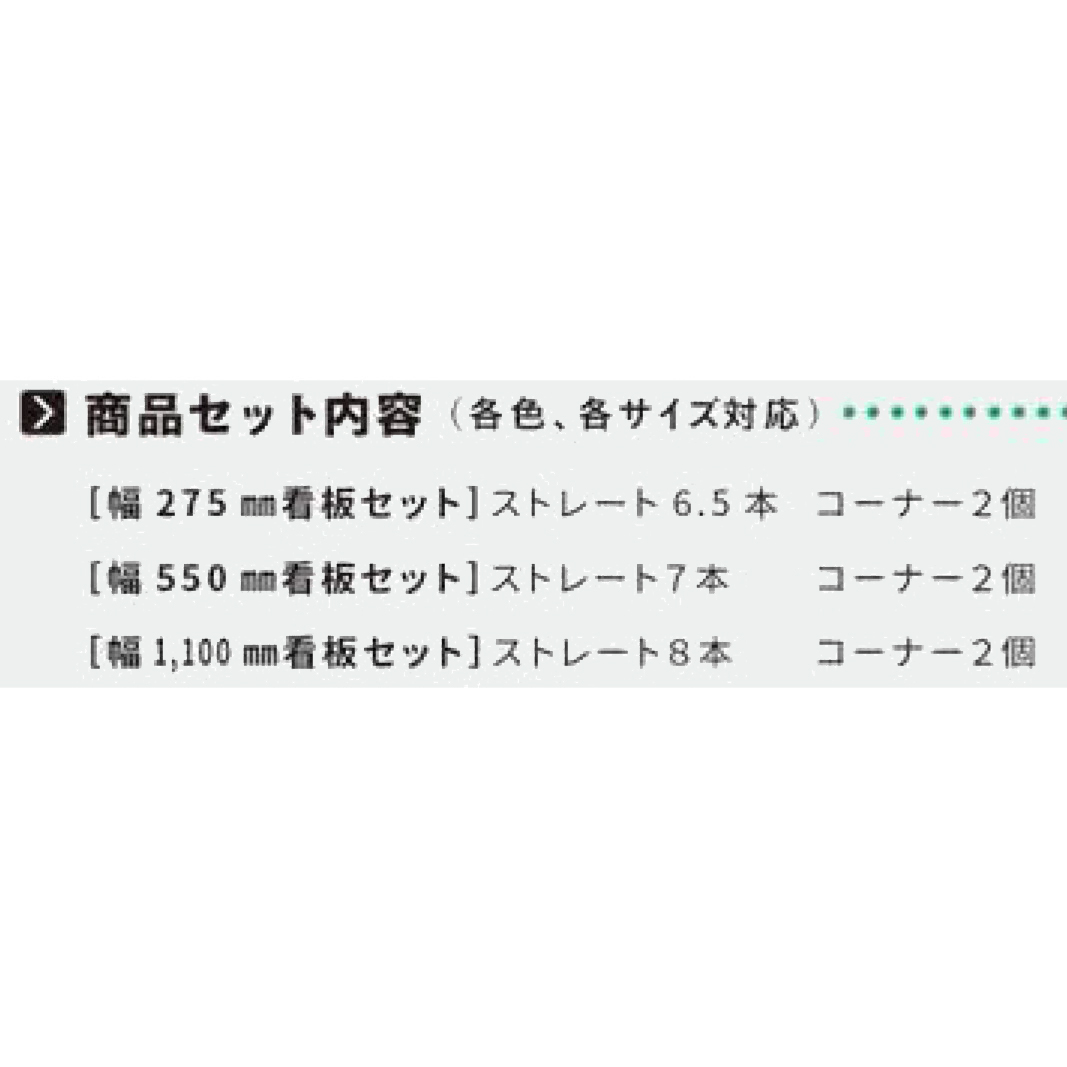| 備考 | ・ストレート8本とコーナー2個のセットです。(エア・ブロック フレームは看板にドリルネジで固定が必要です。エア・ブロック フレームのみでの組立はできません。) ・お客様組立品です。 ・看板は付属しておりません。 ・商品の色はPCと異なって見える場合があり、またPCによっても異なります。色がイメージと異なるという理由では返品は承りかねますので、予めご了承ください。 |