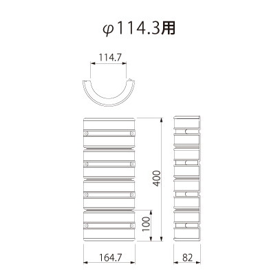 | 備考 | ・取付場所に合わせて100mmごとにカットが可能です。 ・直径114.3mmのパイプ用です。 ・商品の色はPCと異なって見える場合があり、またPCによっても異なります。色がイメージと異なるという理由では返品は承りかねますので、予めご了承ください。 |