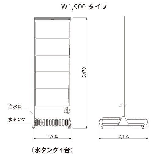 | 重量 | 本体280kg+水満了時110kg/タンク×4個 |