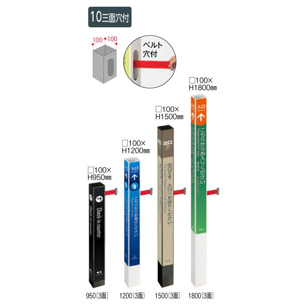 | サイズ | ・本体:□100×H950mm 表示面:W90×H900mm ・本体:□100×H1200mm 表示面:W90×H1000mm ・本体:□100×H1500mm 表示面:W90×H1300mm ・本体:□100×H1800mm 表示面:W90×H1300mm |