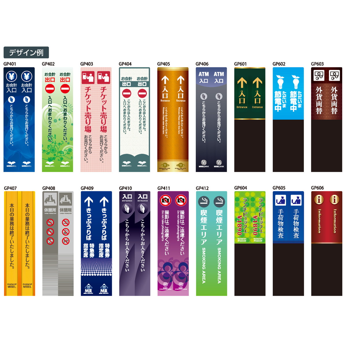 | 備考 | ・1面にベルトパーテーションのベルトを通す穴があいています。(ベルトパーテーションは付属しておりません) ・屋内用ですので屋外や高温になる場所には設置しないでください。 ・表示面はデザインテンプレートからお選び頂くか、オリジナルデザインも可能です。オリジナルデザインの場合はご注文後、ご希望の表示面の内容をメールにてお送りください。 ・表示面は3面ありますが、ベースとなるデザインは1つまでとなります。複数の異なるデザインを使用する場合は別途料金がかかります。 ・価格にはシート印刷、貼り工賃を含んでおります。 ・商品の色はPCと異なって見える場合があり、またPCによっても異なります。色がイメージと異なるという理由では返品は承りかねますので、予めご了承ください。 |