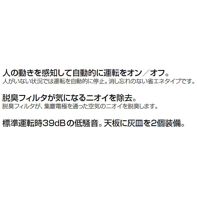 ●タバコの煙を確実に吸引、室内の空気をクリーンにしてくれます。低騒音でショールーム、商談コーナーにオススメです。高さが高めのカウンタータイプです。
