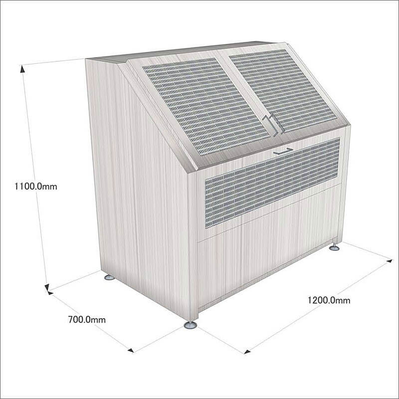 ●前面上部が手前に倒れますのでゴミの回収や内部に入っての清掃作業が非常に楽に行えます。