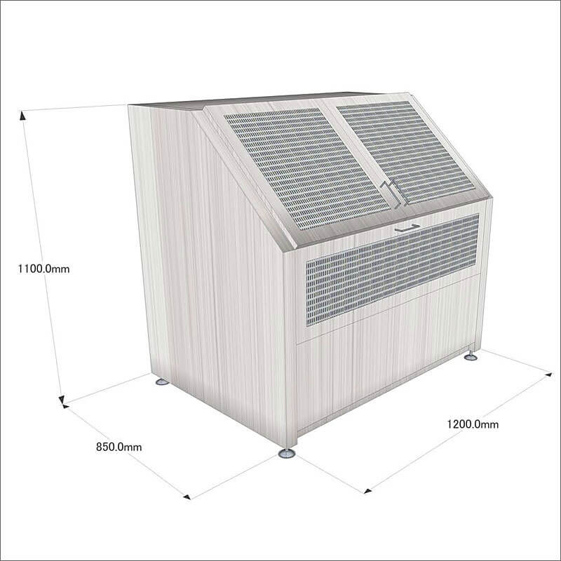 ●前面上部が手前に倒れますのでゴミの回収や内部に入っての清掃作業が非常に楽に行えます。