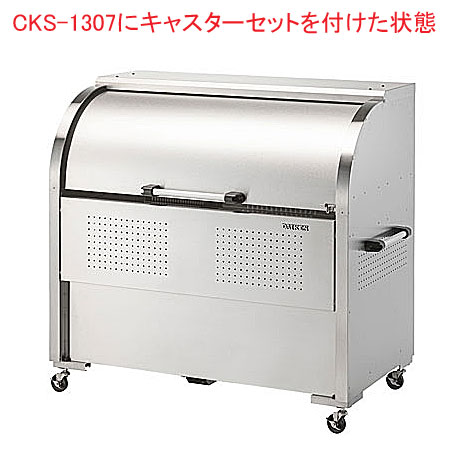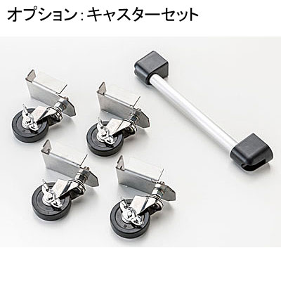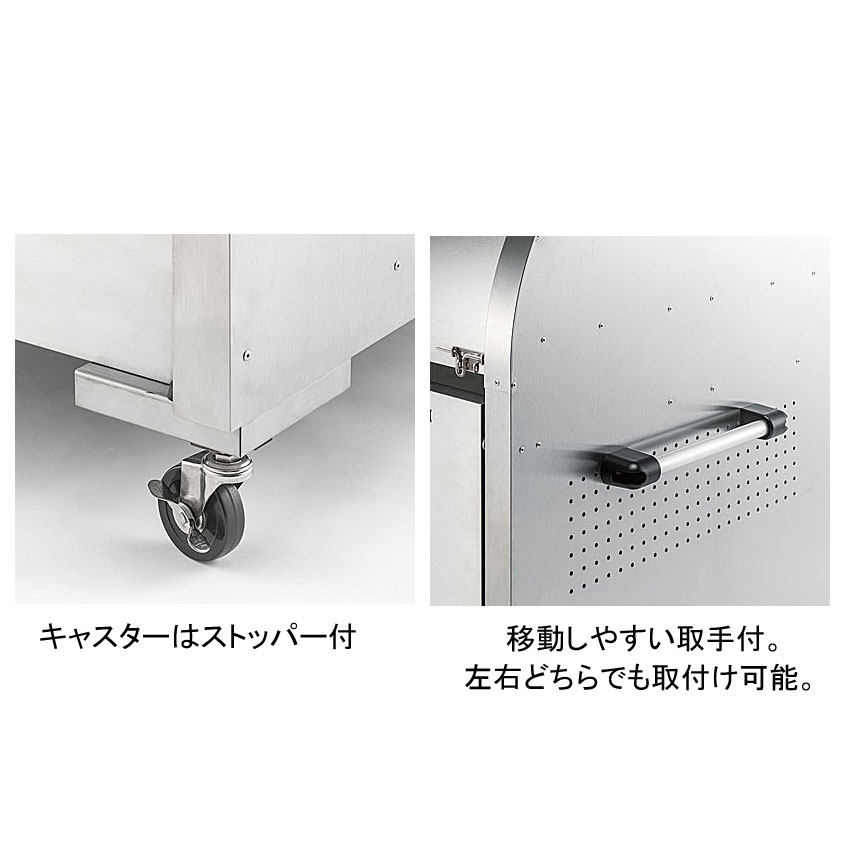 ●オプションのキャスターセットは、ゴミ収集庫本体底面の四隅にストッパー付きのキャスターと、本体側面の左右どちらかに取手を付けることが出来ます。