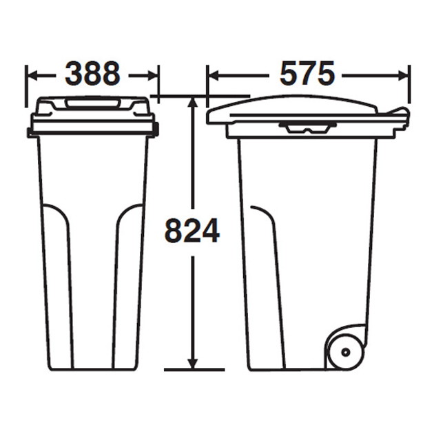 | 材質 | 本体・フタ・フタロック・ポリ袋止め・ホイール:ポリプロピレン 排水栓・重りカバー:ポリスチレン フタパッキン:発砲ポリエチレン 車輪軸・ストッパー・ネジ・ワッシャー・重り:鋼(スチール) タイヤ:エラストマー |