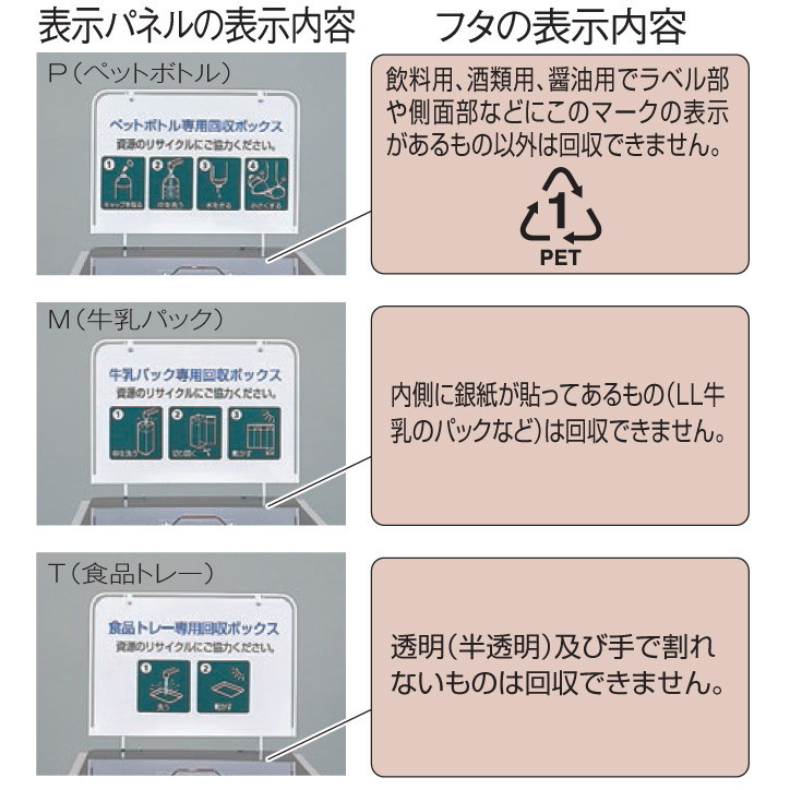 | 材質 | 本体:スチール線材に粉体塗装 表示パネル:PET フタ:ポリカーボネート樹脂 |