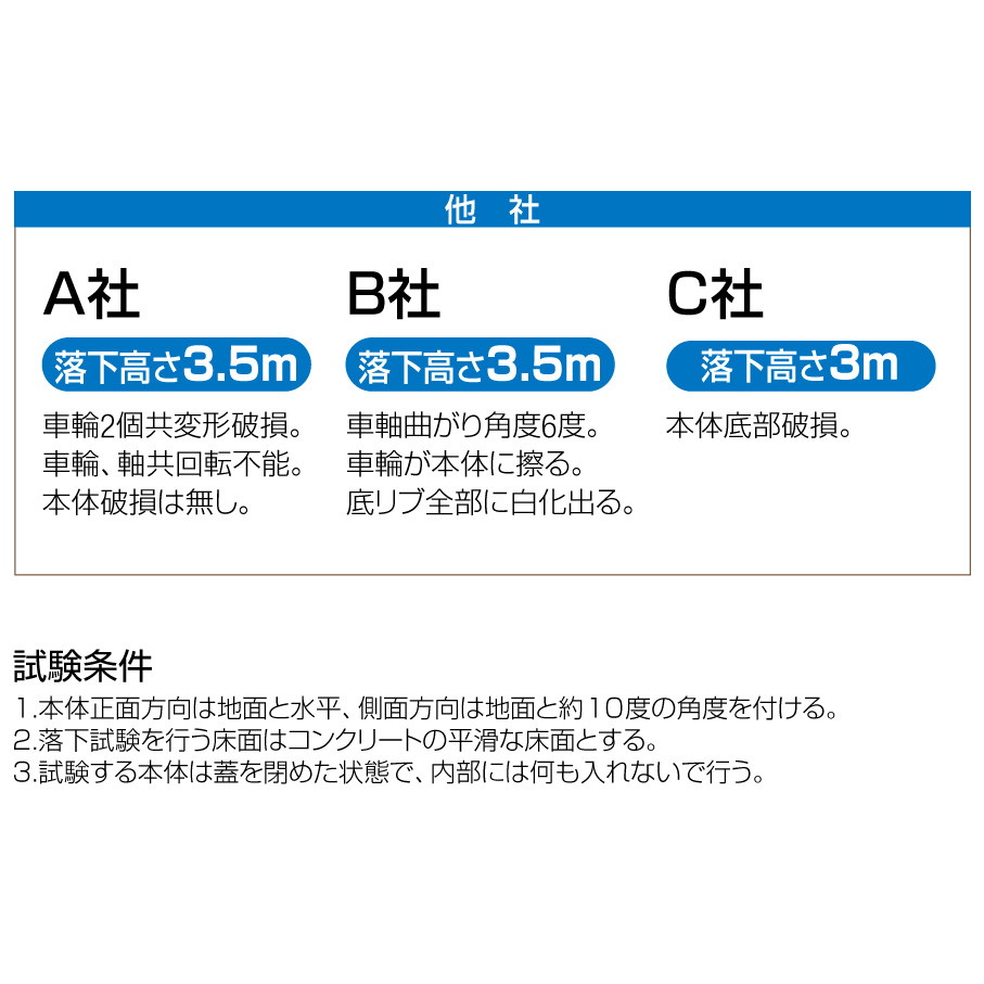 | 材質 | ボディー:HD-PE 車輪:ゴム |