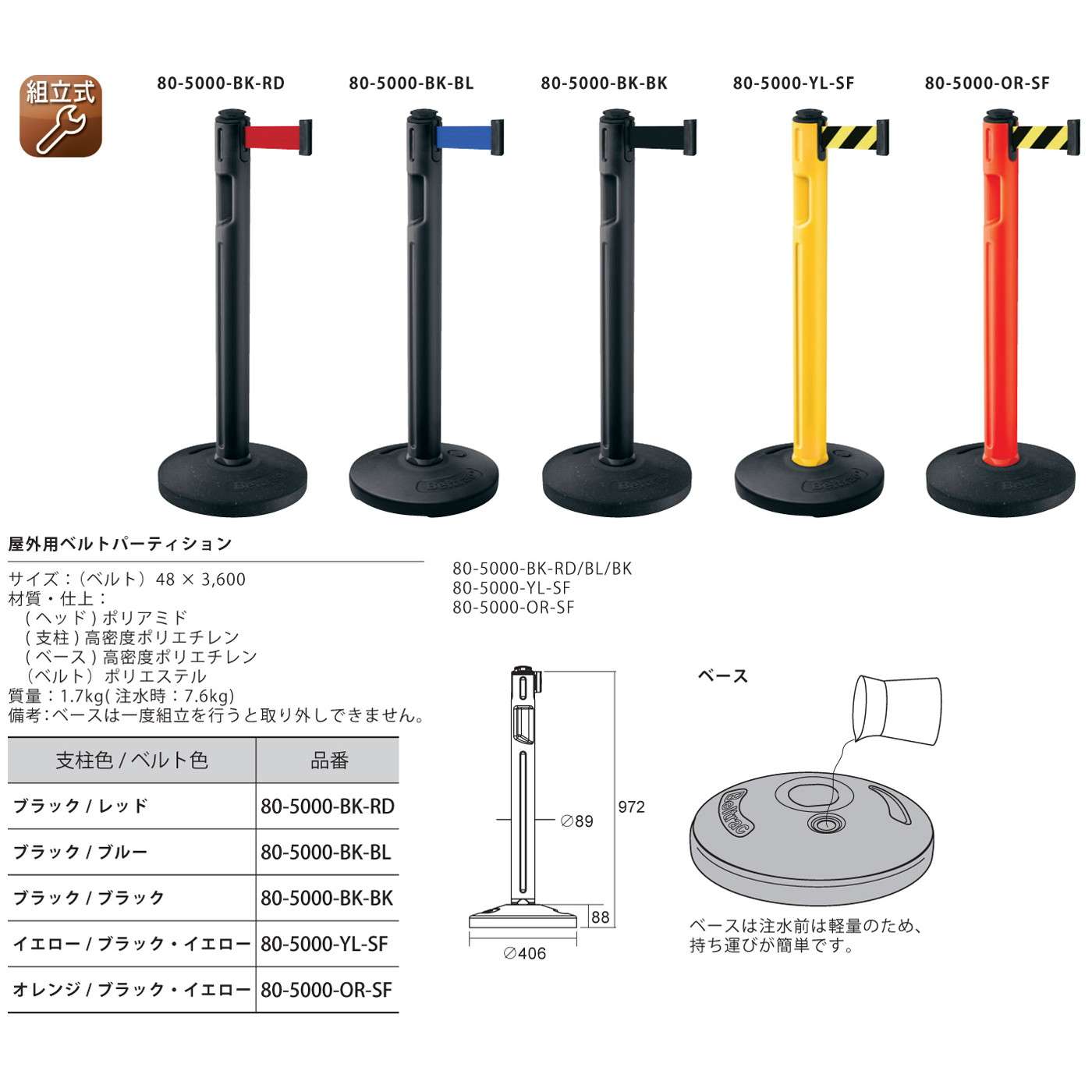 ●ベースは注水タイプのため設置が簡単です。