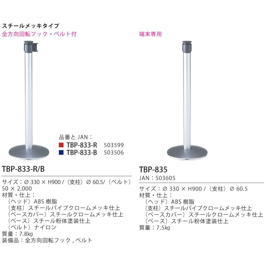 ●パーティションスタンド ロールアップ式 スチールメッキタイプ(TBP-833-R、TBP-833-B)の端末専用としてお使いいただけます。