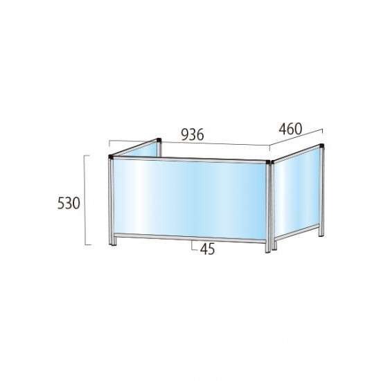 ■製品仕様●パネルフレーム=22mm×25mmアルミ押し出し材/アルマイト仕上げ(ブラック)●塩ビ板(透明)= 厚さ1.5mm※1面と同様に塩ビは交換可能 ※塩ビサイズH450×W900/H450×W424●重量=4.1kg