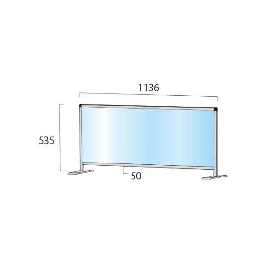 ■製品仕様●パネルフレーム=22mm×25mmアルミ押し出し材/アルマイト仕上げ(ブラック)●脚部=材質:スチール鋼鈑(SPHC) (1個0.18kg) 表面処理:焼付け塗装(ブラック色) ●塩ビ板(透明)= 厚さ1.5mm※塩ビサイズH450×W1100●重量=2.5kg