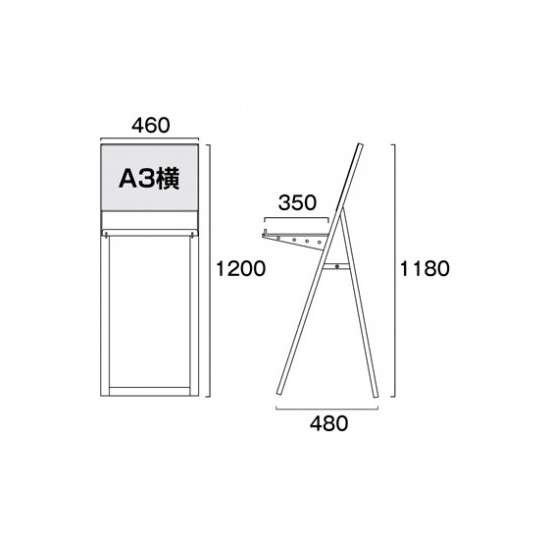■製品仕様●本体フレーム=アルミ押出し材/アルマイト仕上(ブラック)●面板=アルミ複合板(黒)3mm+カードケースA3●受け=アクリル板3mm(底面:アルミ複合板)●棚受け=ZAM●レール=アルミジョイナー/アルマイト仕上(ブラック)※静荷重の一点集中荷重として3kg●対応サイズ=A3横(W420mm×H297mm)●ラックサイズ=W450mm×D345mm●重量=5.3kg※屋内・屋外可(ポスターには耐水加工が必要です)