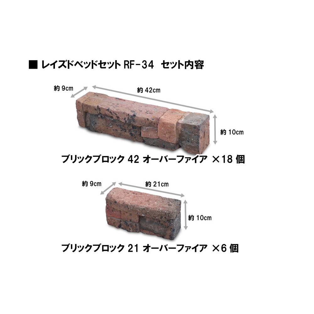 | セット内容 | ブリックブロック21 オーバーファイア×6個(1個約幅21×奥行9×高さ10cm) ブリックブロック42 オーバーファイア×18個(1個約幅42×奥行9×高さ10cm)