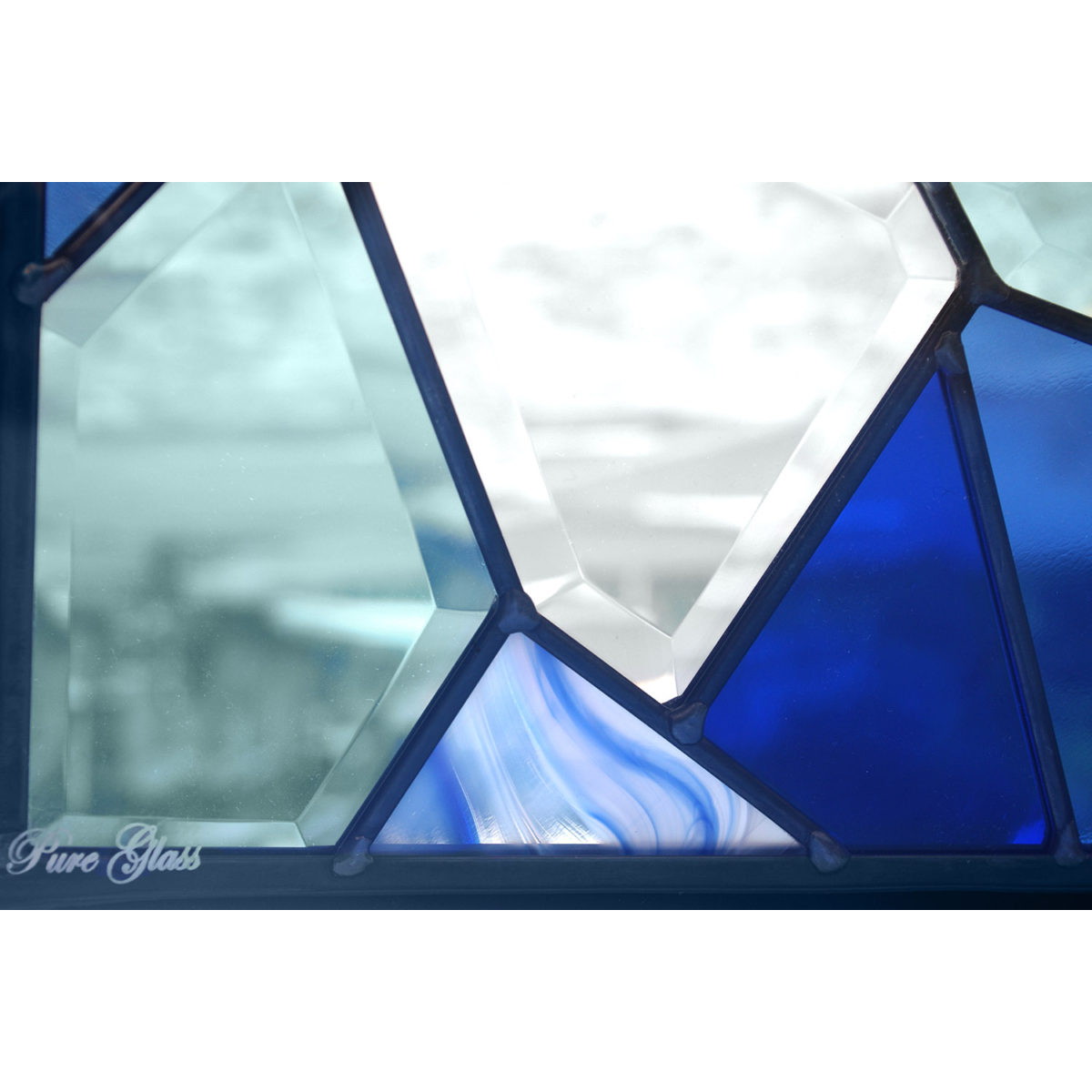 ●青い面取りガラスとマーブルガラスを組み合わせた、ちぎり絵のようなデザイン。お部屋にブルーの統一感を出したい方におすすめ。