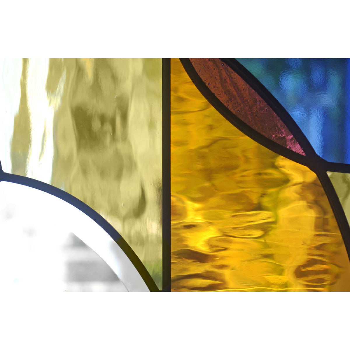 ●ステンドグラスらしい、鮮やかな色彩が魅力の一枚。空間をパッと明るくする、ポップで楽しいデザインです。